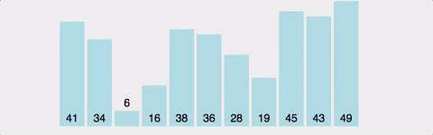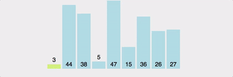 가장 작은 최솟값을 찾고 배열의 맨 앞의 값과 위치를 바꾸면서 정렬