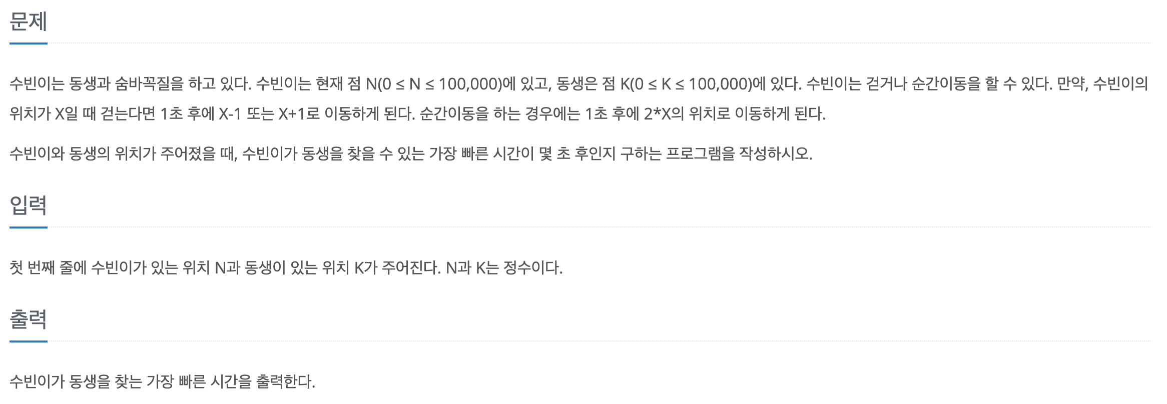 예시 : 수빈이 N - 5, 동생 K - 17