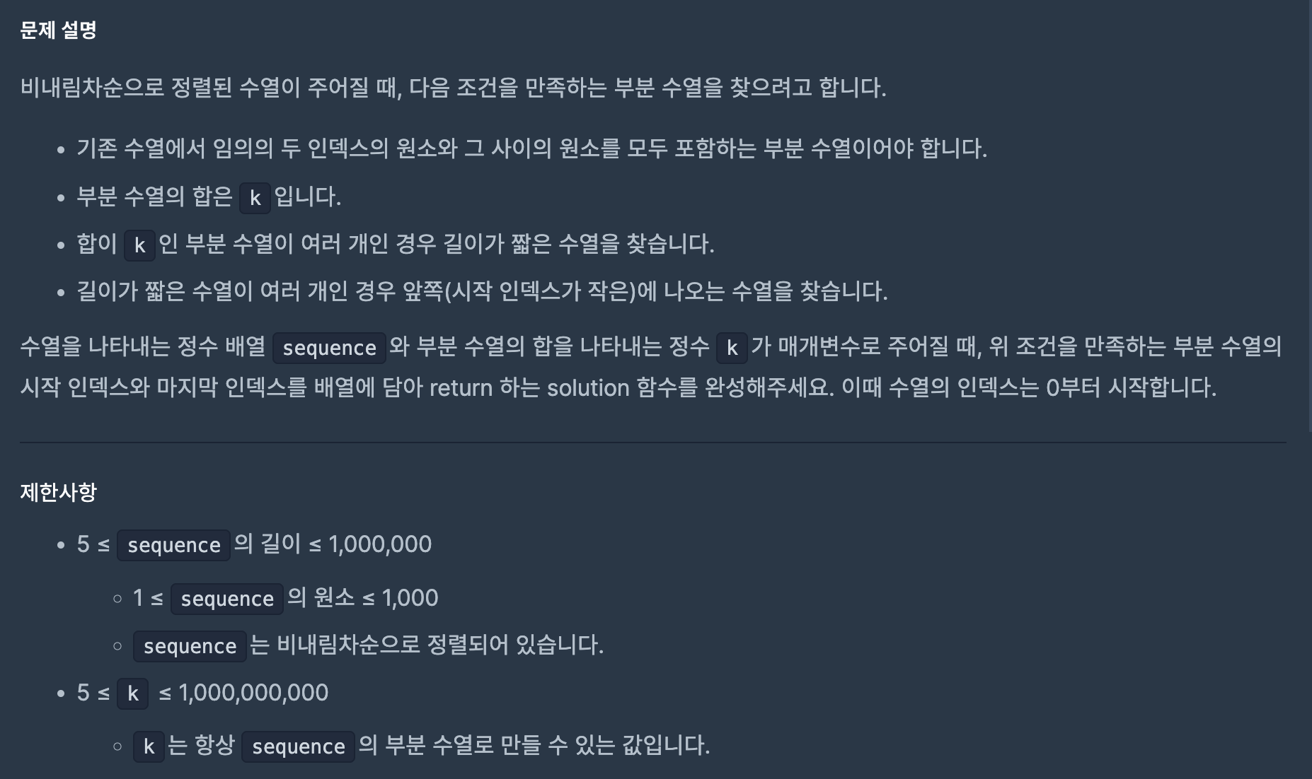 배열 for문으로 돌리니까 시간초과 -> 풀이 보니까 투포인터 알고리즘..