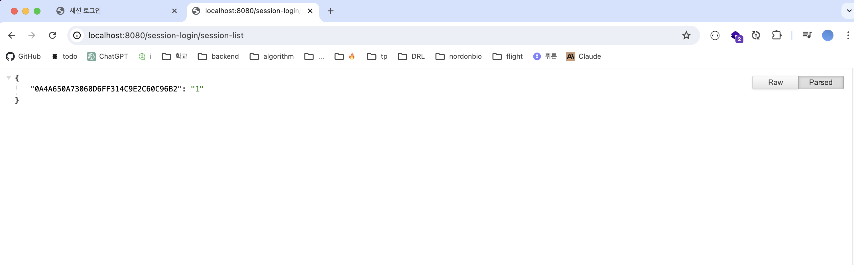 4. 세션 리스트 확인용 URL 매핑 및 sessionList 내용 출력 구현
