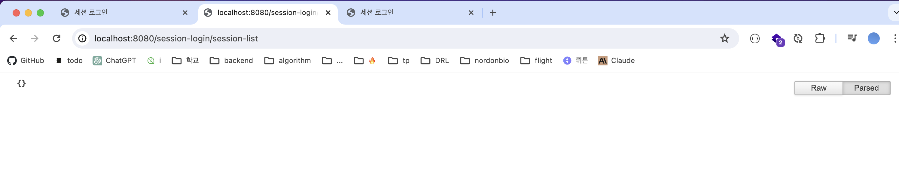 - db가 아닌 로컬 변수에 저장하기 때문에 서버 재실행 시 로그인되어 있어도 sessionList는 비어있음