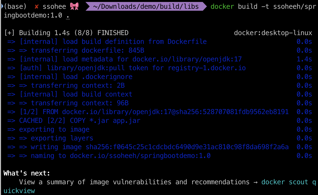 터미널에서 dockerfile이 있는 경로로 이동 후 도커 이미지 빌드