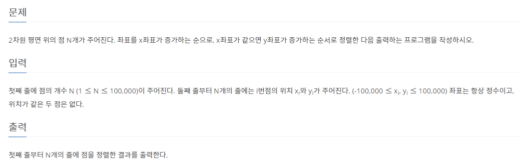 문제 : 좌표 정렬하기