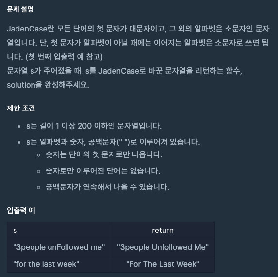 99클럽 코테 스터디 14일차 TIL - 프로그래머스 JadenCase 문자열 만들기
