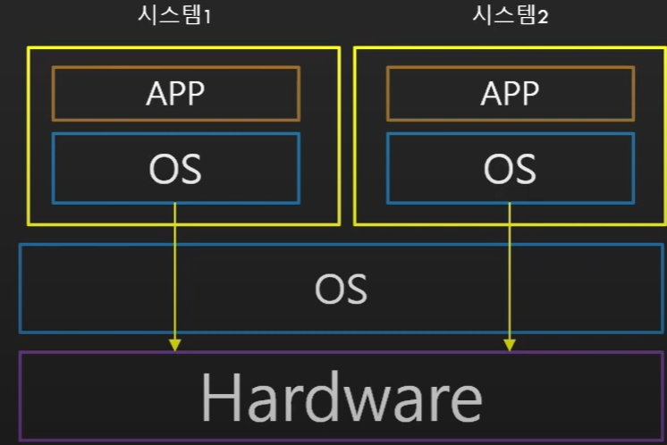 - 하이퍼바이저 : OS와 하드웨어 사이에 존재하는 가상화 매니저